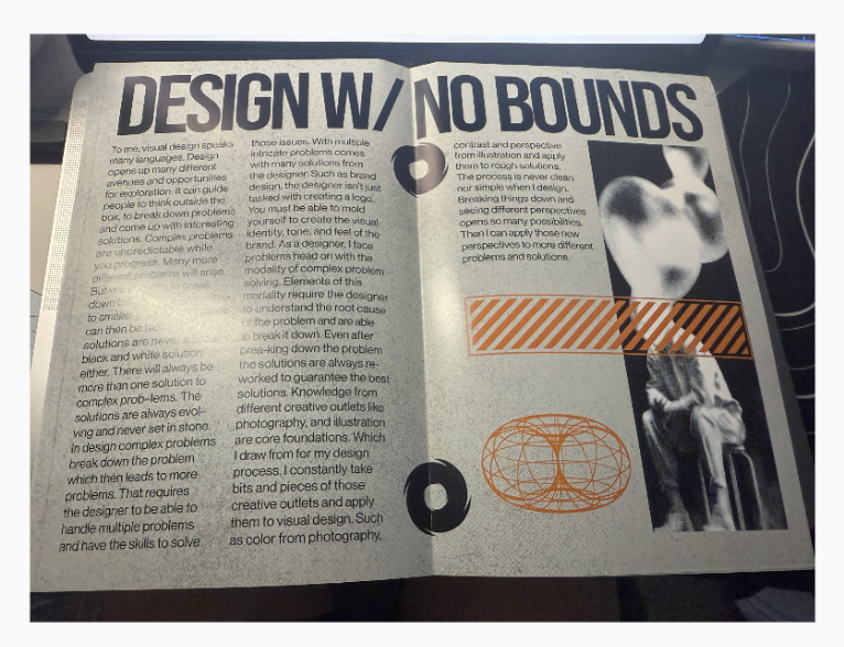 A seven-week design challenge where students reflect on their current creative practice and purpose — and introduce themselves to the design and creative community. They are asked to explore designer practice frameworks and consider the emerging direction of their own practice. Typography, grid/organizational systems, and poster/zine, and on-screen formats provide opportunities for students to create engaging spaces for storytelling across multiple channels. Designers also have the option to build on fundamental digital fabrication skills in vinyl cutting for related vinyl applications.